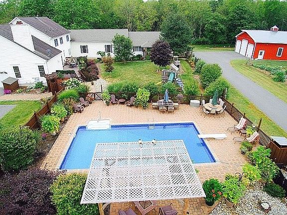 RARE FIND. A 6400 SQ FT MULTI-HOME COMPOUND WITH TWO SEPARATE LIVING QUARTERS ON A BEAUTIFUL FARM-ASSESSED 18 ACRE LOT COMPLETE WITH AN IN-GROUND POOL AND A 42X32 AMISH-BUILT OUTBUILDING/4-CAR GARAGE. THE MAIN RESIDENCE OFFERS A 3800 SQ FT 4BR/2-1/2 BATH COLONIAL WHICH IS CONNECTED TO AN ADJACENT FOUR-ROOM SINGLE-STORY IN-LAW RANCH WITH ITS OWN KITCHEN and ACCESSIBLE BATH BY AN ENORMOUS and TRULY EXTRAORDINARY 48X27 GREAT ROOM WHICH IS CURRENTLY UTILIZED AS A GAME TROPHY RM. THE COLONIAL OFFERS A CATHEDRAL CEILING FAMILY RM, A HUGE MBR SUITE WITH SITTING RM AND A LUXURIOUS BATH, AUSTRALIAN CYPRESS FLRS, EXQUISITE TRIM, AND A GORGEOUSLY LANDSCAPED FENCED BACKYARD WITH A SOLAR-HEATED IN-GROUND POOL. THERE IS ALSO A HUGE WALK-OUT BASEMENT WITH A 50'X22' HEATED WORKSHOP, A SECURITY SYSTEM, GENERATOR HOOK-UPS, and MORE