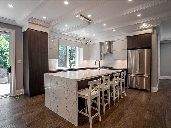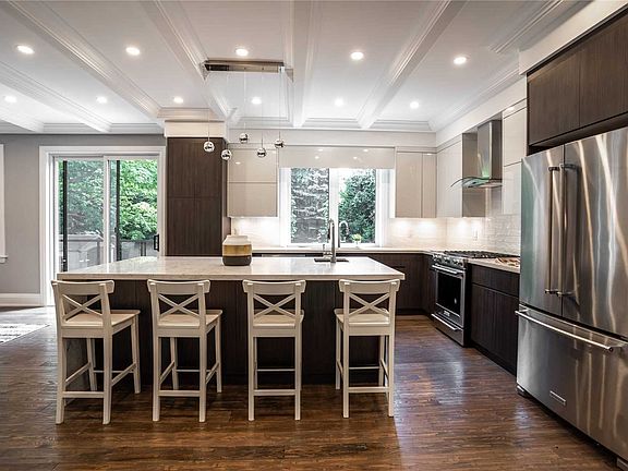 Executive Home. Aprox. 4500 Sqft Living Area. Best Schools Walk Into An Open Concept Living & Dining Featuring Modern Finishes Including 9Ft Ceiling & Pot Lights Throughout House,Office/W Hrdw Flr, Modern Kitchen W/ Quartz Counter-Top & Island, Large Family Rm W/Walk-Out To Deck. Garage Access From Inside House, Oak Staircase To 2nd Flr. Massive Modern Master Bedroom W/5Pc En-Suite & Walk-In Closet. Spacious Bedrms W/En-Suites.Walk To Schools 401,Go Station