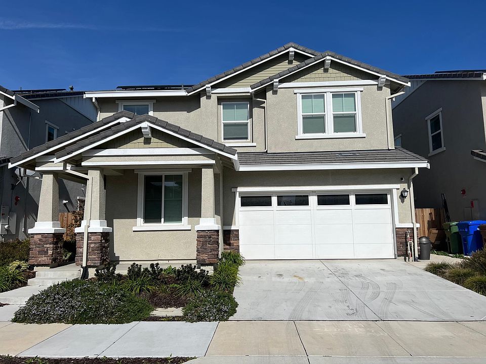 Beautiful 2-year new home in Brentwood in sought after new home community, near everything! 2 story single family home with 4 bedrooms 3 baths; 1 bedroom 1 full bath downstairs for inlaws or guest; Master suite and two secondary bedrooms plus a loft upstairs; Spacious walk-in closet with his/her shelves; Master bath include dual sinks, walk-in shower, and convenient linen shelves; Gourmet kitchen with granite counter tops, central island, black appliances, and maple cabinets with pull-open hardware; Upgraded engineered vinyl plank flooring throughout the downstairs (except in the bedroom); Can ceiling lighting throughout the house and in all bedrooms; Central air / heating system with Solar system and a whole house cooling fan to conserve energy; Fire sprinklers throughout the house to mitigate the fire hazard; Large backyard with low-maintenance concrete patio; Award winning Brentwood schools; Easy access to freeway, BART station, and walk to your favorite stores/restaurants...... Contact me if you're interested in..... Renter responsible for all utilities and front & back yard maintenance. NO pets allowed; NO smoking allowed inside the house; and NO waterbeds allowed. Renter to reimburse landlord $100 per month for the solar generated energy. Solar generated energy saves renter about $150 per month for electricity.