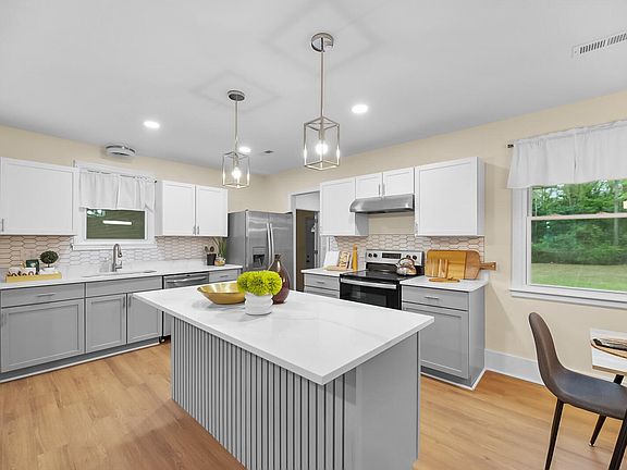 Check out this stunning, fully renovated home conveniently located right in the heart of St. Stephen. No HOA! This beautiful home is only a few footsteps from a wonderful park with a playground, walking track, tennis courts, and baseball field and only 10 minutes from Lake Moultrie! This three-bedroom two bath home has multiple rooms and also a large accessible attached workshop room. Check out all the upgrades and custom pieces throughout the home. Luxury vinyl plank flooring throughout. The kitchen features an eat-in island/dining area, Quartz countertops, tile backsplash, and stainless steel appliances. This home sits on a .5-acre lot and the backyard has countless possibilities for your outdoor oasis or a vibrant outdoor entertaining space for family and friends.This home is ready for its new buyer today.