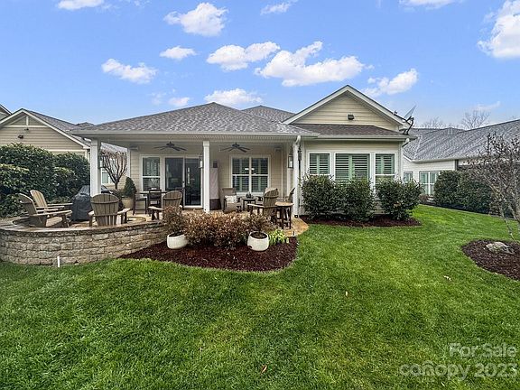 Why wait to build when you can move right in? Completely turn key. 10' ceilings and 8'doors throughout, plantation shutters, sunroom addition, upgraded cabinets with roll out shelving in the kitchen, under cabinet lighting, tile back splash, solid surface counters and large island seating area, 6 burner GE Café cook top, microwave, wall oven, pot filler and a walk in pantry, decorator lighting and colors, primary suite features bump out bay window, ensuite bath with dual vanities plus a make up area, walk in custom closet and shower, laundry flex space with desk area and amazing additional storage, finished garage with 4' extension and wash sink. Front and rear covered patio with slate flooring, gas fire pit with seating wall and mature landscaping for privacy, Great location in the community on a cul de sac street within walking distance to the Twin Mills Club. Trilogy Membership includes Freedom Boat Club on Lake Norman plus award winning