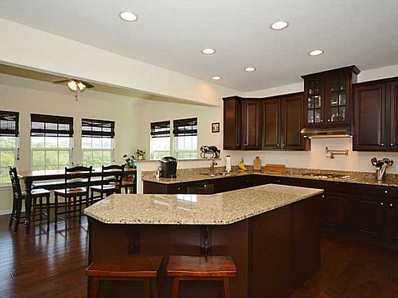 Beautiful home with so many upgrades. Gourmet kitchen w/granite counter tops, tile backsplash, HW floors, stainless appliances, and large center island. Morning room w/HW floors, vaulted ceiling and sliding glass door to deck. Spacious family room w/gas fireplace. Master suite w/large walk-in closet, master bath w/double sink granite vanity. Large 3 other bedrooms. Second floor laundry room. Finished basement w/huge unfinished storage room and a rough-in for a full bath. 17x16 deck w/patio underneath. Fenced in yard, play set and shed. Tasteful dcor. Move-in ready!