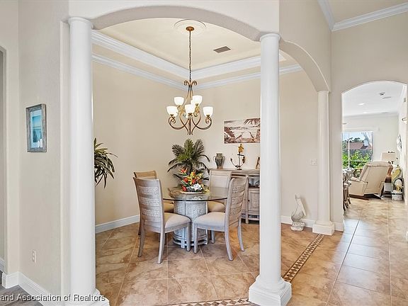 3 bedroom 2 bath with office WATERFRONT TO LAKE JUNE home surrounded by water on two sides! These coveted lots and homes are RARELY AVAILABLE and this one is spectacular! Sitting on approximately 1/3 of and acre you have over 250 feet of water on two sides giving you breathtaking views! Undeniable curb appeal as you pull up to this beautiful waterfront oasis on the cul-de-sac with gorgeous landscaping and fruit trees. When you walk inside this one of a kind custom built home, you are greeted by graceful columns that surround the dining room with crown molding and lighted tray ceiling. To the left is a hall leading to a HUGE master en-suite fit for a king...and a queen :). The 21x 15 master bedroom leads to your luxury bath with double vanities, jetted spa bathtub and step behind shower! The master bedroom also has a split A/C in addition to central A/C, water views and two walk-in closets! Straight ahead off the landing is the living room that is open to the kitchen. Soaring ceilings and lots of windows give an airy feel to the space. The kitchen is FABULOUS with TONS of Cherry wood cabinets giving it a timeless elegant feel and it features a breakfast bar and an island with its own prep sink for multiple chefs! Triple split plan has an office and bedroom with sliders to the patio on one side of the home and another bedroom with sliders leading to the hot tub and a beautiful spacious guest bathroom. Off the living room is the screened patio overlooking your boat house and the water with spectacular views! There is a newer hot tub so jump in after a day on the boat with a cool beverage and RELAX! Stroll to the boathouse and jump in your boat and you will be on 3700 Freshwater Lake June in minutes! Spend time with friends and family swimming, skiing, tubing, fishing or just taking in one of our awe inspiring sunsets! The side entry garage is large and there is lots of room on the side of the home for your RV and trailer. WHOLE HOUSE GENERATOR, 3m IMPACT WINDOW FILM on windows and of course there are shutters too. SO MUCH TO LOVE in this beautiful one of a kind home. Lake life is the BEST life so come live the dream!