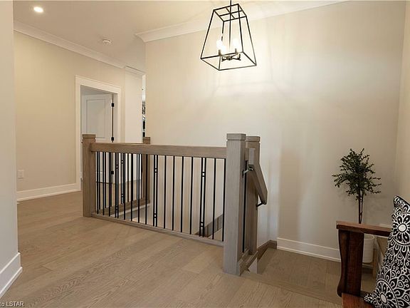 STUNNING IN STRATHROY BACKING ONTO THE GOLF COURSE! This fully finished 2+2 bedroom, 3 bath condo backing onto Caradoc golf course with breathtaking views in beautiful South Grove Meadows, offers a remarkable living experience. Stepping through the front door, a spacious foyer welcomes guests into the warm embrace of this stunning home. The attention to detail in things like the crown molding and gorgeous engineered hardwood flooring are very evident as you enter. The main level features a fantastic open concept layout with captivating views of the golf course from the kitchen equipped with elegant quartz countertops, a functional island with a breakfast bar, and a walk-in pantry. The living room and dining area are adorned with a vaulted ceiling, custom built-in cabinetry surrounding the modern electric fireplace, large bright windows framing the golf course views, and a patio walkout to the covered rear deck. The primary bedroom exudes sophistication with a modern feature wall, a walk-in closet, and a four-piece en-suite showcasing double sinks and a luxurious glass shower. Another bedroom on the main level which is also versatile for office use, a full 4 piece bath, laundry closet with stacking washer/dryer and access to the attached double car garage, offers convenience on all on one level. The lower level of the condo is impeccably finished with a spacious family room boasting custom cabinetry around the modern electric fireplace. Additionally, two generously sized bedrooms and a three-piece bath with a glass shower complete this level. The backyard is a standout feature with a large covered sundeck & mesmerizing views of the 17th hole at Caradoc Sands. Included are five appliances, enhancing the functionality of the home, alongside its great location in the south end of town close to shopping, restaurants, the dog park, and numerous amenities. There is also as a bonus visitor parking right across the rd. This home presents an opportunity not to be missed.