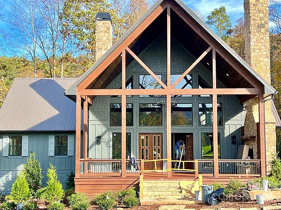 NEW CONSTRUCTION. MOUNTAIN VIEW, +-200 STREAM FRONT, 28' WALL OF GLASS overlooking sunset mountain views, framed by ponds, pastures and the rushing waters of Pine Creek. Nestled on a 1.49 +-acre FLAT grassed lot with frontage on a crystal-clear trout stream. 40' from the stream's edge and 3 MINUTES FROM LAKE GLENVILLE. Listen to the shoals from everywhere in/around the home. 3550+- SF finished on two levels. 4 Bedroom 4.5 bath. TWO Primary bedrooms on the main with vaulted/Beamed ceilings and private decks overlooking the stream. Each has an incredible oversized shower with rain head and a soaking tub. Gorgeous stone firepit right at the streams edge. Home to native brook trout, where bald eagles soar and Cherokee Nation arrowheads are found along the banks. 20 minutes to the crossroads of Cashiers along the gorgeous shores of the lake. Finishing touches (Final staining/paint) being completed this week. This is the last home in a Private enclave of 4 NEW Telluride inspired Mountain homes.