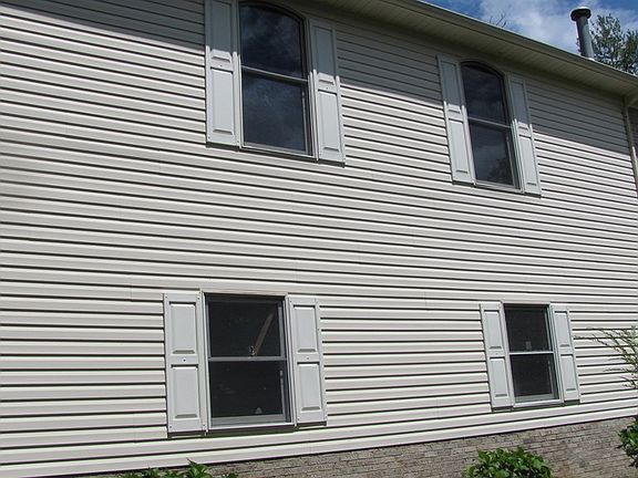 - Exterior features: Vinyl, Wood
