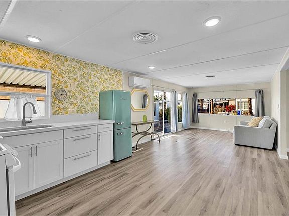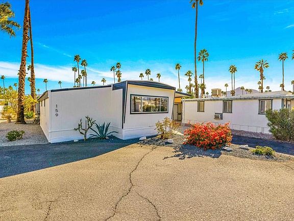 Freshly painted and ready to go! A wonderful opportunity, and a terrific 1BR/BA home with ~400 sq ft additional living space; for office, den, or 2nd bedroom ...in one of the best parks of south Cathedral City! Royal Palms is known for it's fun in the sun, an active 55+ community with a clubhouse, fitness center, pool & spa, and a host of amenities like the pickleball courts, putting greens, or shuffleboard. Now whether you are active with friends, or just relaxing back at home, it's all right here. This home has been nicely upgraded with lots of goodies like the laminate wood flooring throughout, the new cabinets & quartz countertops at the kitchen, or the large walk-in tile shower at the bath. Also, this home comes with the staples of newer electric & plumbing, plus foundation upgrades below, foam roofing at the top! Dual pane windows in some locations, plus two wonderful AC/mini-split units for zoned cooling or heat. This home is rather efficient and always comfortable! All new appliances included, washer & dryer too. This home has a nice open floorplan and so many windows to capture the sunlight and all the gorgeous mountain views from almost every window! Plus, the private rear porch and yard, a bit of serenity awaits you :). Carport & storage units outside included. Royal Palms is a pet friendly place too, with dog parks and walking areas, plus RV/other optional services too. Park's space rent of ~$825 covers most things, no HOA. COME SEE US TODAY!