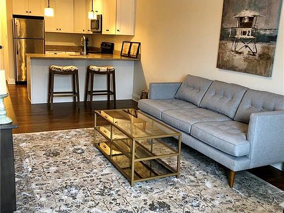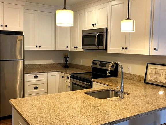 Open Floor plan with Hardwood floors, Kitchens features granite counters and Stainless steel appliances. 2 Bedrooms, two baths, Laundry room-with washer/dryer in each unit. Central Air, Gas Heat. Double wall construction with sound-proofing. Walk to town, shops and restaurants. Convenient commuter location. REC Center next door with walking trail. Elevator in building. Pets must be approved. Secure and ample sized storage rooms available at an additional cost. Proof of employment, first, last and one months security upon approval.