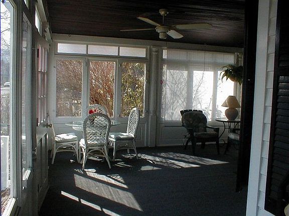 Let the large enclosed porch welcome you home to this charming Victorian home. Small nooks and crannies and winding stairway adds to the charm of this 3 bedroom, 2 bath home. A deck off the back with roll away cover overlooks the fenced-in backyard with perennial beds. A 2-car garage sits to the back of the lot. Come take a look and turn this house into your home! Silver candelabrum in dining room does not convey.