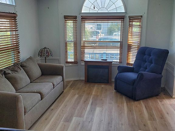 1 bedroom/1 bath home with RV Lot, 2 Sheds with bath and Washer and Dryer, sold separately. Home comes with and storm shelter and Storage with plumbing for a washer and dryer. In the community of Spanish Cove on Perdido Bay. This bright open spacious home has been newly updated with vinyl flooring throughout and a sunroom perfect for entertaining overnight guests. The outdoor shed gives you a lot of storage and a bonus storage room that doubles as the owner’s storm shelter. Notable features include new vinyl flooring, white cabinets, and a metal roof. This property is only minutes away from the Lilliam boat launch and 15 minutes from the sugar-white beaches of the Gulf of Mexico. Great opportunity to own a cozy, coastal property. Owners enjoy membership with a lifestyle full of amenities and low POA dues of only $74/mo (including trash pick-up). There is something for everyone: key fob access to all facilities, 24-hour security, two clubhouses to host events and club meetings; year-round junior Olympic-sized swimming pool with aquatic classes; tennis and pickleball courts; basketball court, fitness facility, playground, public shower area, shuffleboard court, and nature trails. You can join community-organized activities like Bingo, card and game nights, book and garden clubs, and enjoy group travel opportunities. If you like to relax, you can spend the day at the Spanish Cove beach area or fishing from the 500-ft pier or check out the neighborhood lending library with puzzles and movies, public showers, and a laundry facility on-site for your convenience. Watch the sunset while taking a stroll around this lovely golf cart community. Check out the the Spanish Cove website to see all the HOA and R&R and upcoming events http:/spainishcove.org