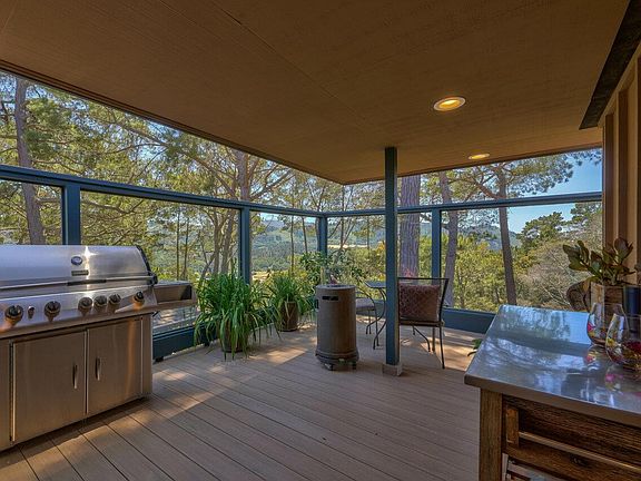 Enter your dream home through an elegant custom stone entryway with beveled glass french doors. This stand alone "C" unit is highly desired due to its privacy and quiet location within the Del Mesa Carmel Community. This elegant home has beautiful mountain views as well as a wraparound deck with glass enclosure to enjoy all year long. The kitchen, designed by Scavolini, has been opened to create a space to make any entertainers dreams come true. Equipped with a Wolf 5-burner gas cooktop, Gaggenau hood, Built-in Microwave, Thermador oven & warming drawer. Refrigerator ice/water dispenser connected to reverse osmosis. With its beautiful quartz countertops and back splash this home is ready to host a gathering. Custom lighting throughout as well as built in cabinetry/bookcases. The gas log fireplace in the living room is the perfect place to relax. The heated floors in the hall bath will be a delight to your guests. Amenities galore within the private gates of Del Mesa Carmel.