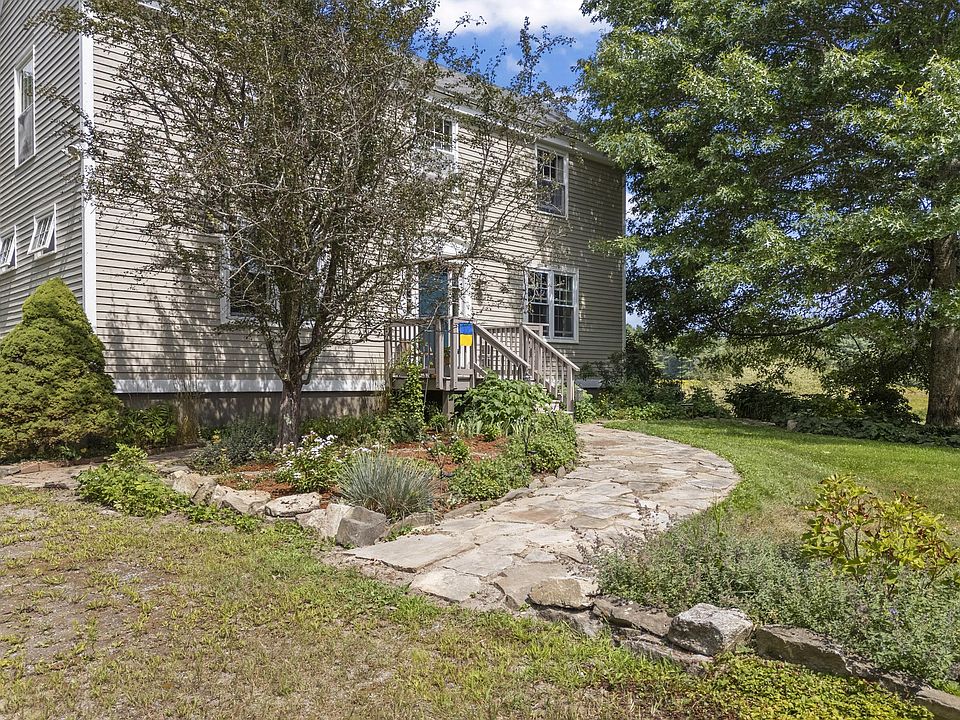 Welcome to 159 Dock Road! This sun-filled Saltbox home radiates timeless New England charm and warmth throughout. Located on a quiet dead-end road, the home is tucked back amid rolling meadows and surrounded by beautifully landscaped grounds, offering an exceptional sense of privacy and tranquility. A welcoming entryway, complete with a built-in bench and a discreet half bath, opens through French doors into a bright, open living area with warm wood floors and a natural sense of flow.
