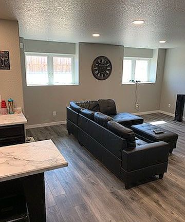 This home has upgrades inside and out that will make any homeowner proud. The main floor welcomes you with vaulted ceilings and an open-concept floor plan. The kitchen features Maple, espresso-colored, soft close cabinets, kitchen island, pantry, and stainless appliances. There are two spacious bedrooms including the master suite. The master bath has a barnwood-style door, dual sinks, and a custom-tile shower. Head out the sliding glass door off the kitchen onto a private deck overlooking a beautifully landscaped back yard with underground sprinklers, firepit, and patio space perfect for enjoying North Dakota evenings. The exterior of the home features JAMES HARDY cement siding and high grade shingles. The finished, oversized double garage is heated and has lots of room for cabinets. There is also an additional RV pad on the side of the garage. Call for a private showing today!