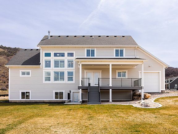 LARGE PRICE REVISION. Schedule now to see this beautiful home. Discover this exceptional open-concept luxury home just a two-minute drive from the beautiful Mantua Reservoir! Nestled at the base of the mountains, this property provides immediate access to outdoor activities, including hiking, camping and 4-wheeling trails. Enjoy the convenience of Logan just 20 minutes away the the Salt Lake City Airport within a hours drive. From the moment you walk through the front door you will be impressed with this home. The foyer entrance has herringbone tiled floor with accent walls and stunning coffered ceiling, and floor to ceiling brick with gas fireplace and built in bookshelves in the living room. The dining area showcases stunning 18-foot ceiling beams. The professional kitchen is appointed with high end appliances, including a built in refrigerator, 48-inch cooktop with a professional hood, and double ovens. Additional highlights include Smart Side Lap siding, wainscoting, and shiplap accent walls, high-end plumbing fixtures, granite and quartz countertops, as well as Plantation shutters and high end cabinetry throughout. Large Trex deck perfect for entertaining and barbecuing. This beautifully designed home features a main floor master ensuite with 14-foot ceiling beams, a built-in cabinet with quartz countertop in the closet, eliminating the need for a dresser, as well as dual vanities and a euro glass shower enclosure. The expansive basement offers potential for two additional bedrooms and a bath, and has a home theater equipped with ceiling surround sound, a game room that includes a kitchenette, as well as a large cold storage room, and a basement walkout. Situated on a corner lot this home has plenty of room to add a shop and plenty of parking with a oversized 4 car garage with a pull through. Don't miss this opportunity to own this dream home perfectly appointed for luxury living and an active outdoor lifestyle! Square footage figures are provided as a courtesy estimate only and were obtained from county records. Buyer is advised to obtain an independent measurement.