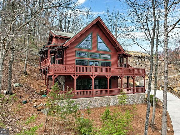 Welcome to 159 Eagle Creek Trail, located in the exclusive, highly sought-after McLemore Resort community atop Lookout Mountain, GA. Overlooking Hole #6 of The Highlands Course, this stunning home provides the perfect blend of mountain charm and luxurious living. When you become a resident of McLemore, you enjoy more than just a home. The prestigious community of McLemore delivers two world-renowned 18 Hole golf courses, The Highlands Course and The Keep, as well as The Cairn, a 6-hole short course. In addition, residents can enjoy countless amenities including a 9-hole putting course, golf practice facilities, hiking trails, professionally maintained tennis courts, pool and fitness center, and a spectacular old-world style stone clubhouse. This charming 3 BD, 3 BA home has 2430 SQ FT of living space and is spread across three levels. On the main level, you will find a spacious living room providing gorgeous floor to ceiling windows, a lovely stone fireplace, and double doors that take you to the incredible wraparound front porch that overlooks the fairway and green of Hole #6, providing a one-of-a-kind outdoor entertainment area to enjoy. The custom kitchen as well as the primary suite are also on the main level. The upper level provides a sizable bedroom as well as a loft area that overlooks the living area and has access to a private deck. The bottom level has an additional bedroom and a cozy den area with a second stone fireplace, as well as access to a lower wraparound covered deck. This picturesque mountaintop home combined with the distinguished lifestyle that McLemore provides makes this residence a spectacular, remarkable opportunity like no other. Call today to schedule your private tour and discover a lifestyle above the clouds.