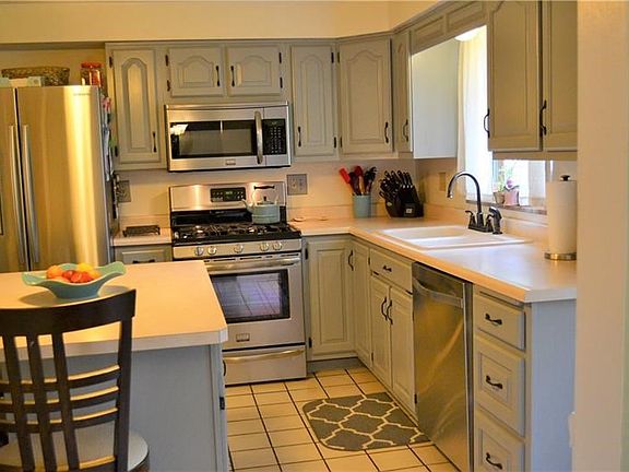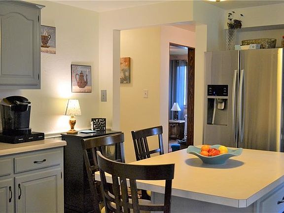 This 3-4 bedroom home is on a quiet street yet close to all the conveniences. The open concept living room/dining room is inviting with the gas fireplace as the focal point. Two large picture windows on either side of the room provide lots of natural light. Enjoy family time around the dining room table with views of the beautiful fenced in back yard with a spacious deck for outdoor entertaining and a shed for extra storage. The updated kitchen features stainless steel appliances, a large island with seating, and ample cabinet and counter space. The first floor also boasts a 15x13 bedroom, which is currently used as a play room/den, and another bedroom or office. The upper level has two more bedrooms with lots of closet space! There is a full bathroom on both floors. For even more living space or storage the basement is ready to be finished. The one car integral garage is an added bonus! Home Warranty included.