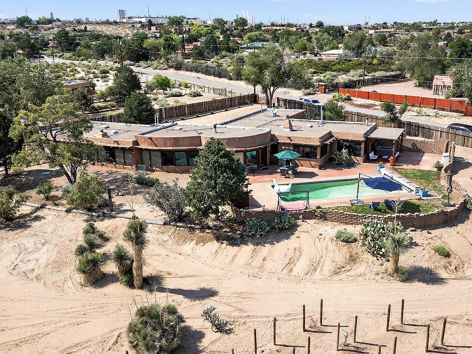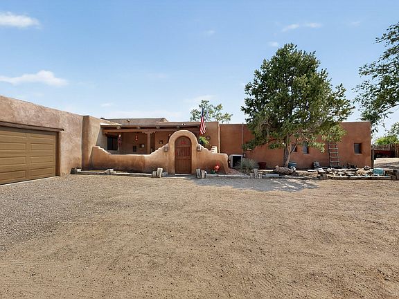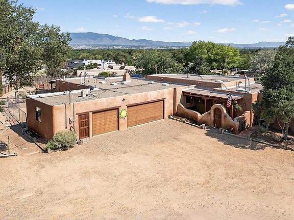 This dual-gated, .94 acre estate in Corrales is a custom, well-maintained, move-in-ready home, offering privacy and panoramic mountain views that dominate the day, while city lights provide a stunning nightly backdrop to your private pool & hot tub. The interior stays true to its roots with exposed adobe walls, raised latilla ceilings, and original brick floors throughout. Recent improvements ensure a worry-free transition: Septic & roof updates (2025), new windows & exterior doors (2023), well pump & tank (2023), east & west HVAC (2020), perimeter coyote fence (2019). Historic Southwest character throughout this property provides a serene sanctuary for the discerning buyer seeking beauty, security, and connection to the high desert landscape. Your Corrales retreat awaits.