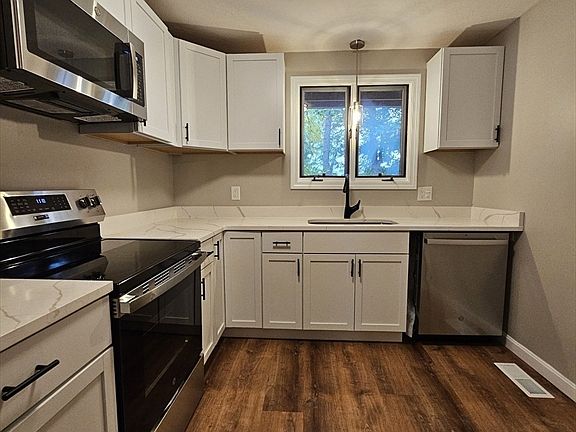 - Features: Flooring - Vinyl, Window(s) - Bay/Bow/Box, Pantry, Countertops - Stone/Granite/Solid, Countertops - Upgraded, Cabinets - Upgraded, Remodeled, Stainless Steel Appliances, Lighting - Pendant, Lighting - Overhead