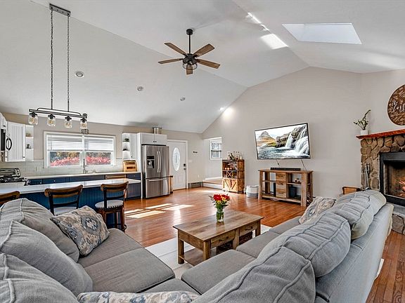 Welcome to 159 Elm Street, North Reading—an inviting, oversized 3-bedroom, 1 bathroom ranch that beautifully blends modern updates with a warm, welcoming atmosphere! This thoughtfully designed home features bright, open spaces with hardwood floors and tasteful finishes throughout.At its heart is the sun-drenched, spacious family room and updated kitchen, combined into a stunning open area with cathedral ceilings, skylights, and a stone fireplace—perfect for gatherings and everyday living. The kitchen offers quartz countertops, stainless steel appliances, and ample cabinetry, flowing seamlessly into the dining area, which also boasts its own cozy wood-burning fireplace.With convenient access to schools, parks, shopping, and major highways, this home combines tranquility with accessibility, all set on a rare, fully fenced 1.1-acre lot that offers privacy and ample outdoor space.Don’t miss out on this North Reading gem—**BEST & FINAL OFFERS DUE BY 3PM ON MONDAY NOV 4,2024**
