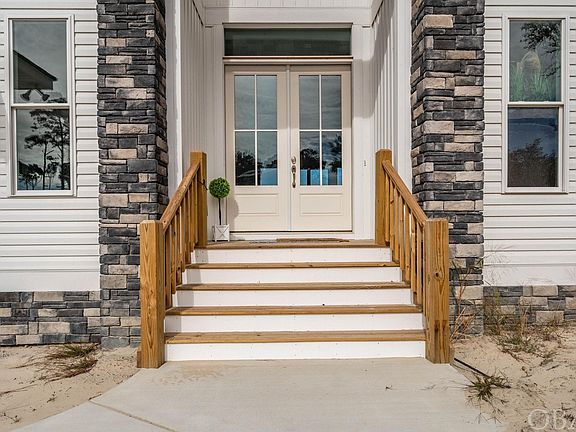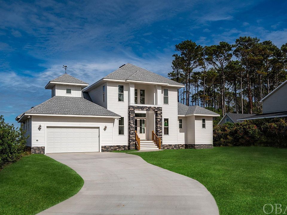 Amazing sound front views await the new owners of this custom-built Heritage Point home. This newly constructed home consists of 4 bedrooms, 3.5 baths, sweeping sound front views, elegant finishes, two car garage and a pool house- all in the amenity-rich community of Heritage Point. The ground level open floor plan showcases the panoramic beauty of the Roanoke Sound from each room. Open and airy, this level features a grand foyer, 10’ ceilings, Shiplap and Bead Board accents, 3-panel interior doors, luxury plank flooring, the great room/kitchen/dining areas, powder bath, laundry room and two bedrooms. The great room offers a fireplace and custom-tiled wet bar complete with wine storage and beverage fridge. The adjacent kitchen has an elegant design with a suite of GE stainless appliances (including a six-burner gas stove), tons of cabinetry with undermount lighting, and gorgeous granite counters. The kitchen and dining areas also capture the sound views and feature high end lighting to complete the luxury feel. A genteel, wide covered porch with access from each area provides the perfect spot to relax in the natural beauty of the water views, entertain, or dine al fresco. The ground level has a convenient large pantry, a laundry room with granite counter and washer/dryer hookup, and a half bath which can be accessed from the porch. This side of the house is where the first ensuite bedroom is found. This bedroom features sound views and porch access, as well as a private bath with a stunning custom-tiled shower and convenient linen closet. The opposite end of the house holds the other ground floor bedroom which can be closed off to function as a private ensuite. This bedroom features more sound views with porch access, an oversized walk-in closet, and another luxe private bathroom. The incredible custom tile work in the shower/ garden tub area and the elegant double vanity creates a true spa-like environment. A grand staircase off the foyer leads up to the remaining guest rooms, both with more captivating sound views, 9’ ceilings, and a wide covered balcony which looks out to the water, backyard, and pool house. The first guest room features a large double closet, a huge window, and porch slider for balcony access. The second guest room also has views, balcony access and an adjacent bonus room. The bonus room, with a sound view, is the perfect spot for a “tricked-out” dressing room, private sitting room, office/den, or whatever the new owner may want it to be. There is an elegant hall bathroom with double vanities and a separate custom tiled tub/shower area. The upper level also offers ample storage space which runs along most of this side of the home. In addition to the oversized two car garage with Cupola, this property has an unfinished pool house. All that’s left is to drop in a gorgeous sound front pool and a perfect retreat awaits. The prestigious community of Heritage Point offers the added amenities of a sound front boardwalk and private marina (with assigned boat slips, ramp, and 20K Lb remote controlled boat lift), tennis courts, clubhouse, pier, and sound front gazebo. Heritage Point is close to Historic Fort Raleigh and the charming town of Manteo with its many boutique shops, restaurants, and community events. This elegant, comfortable sound front home is the perfect spot to create a forever home in a water lover’s paradise just a short drive to the Outer Banks southern beaches.
