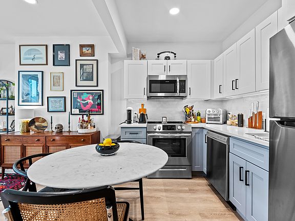 Introducing 159 Franklin Street, a charming boutique walk-up nestled in the heart of Greenpoint's most coveted locale. This recently renovated unit has an open layout and boasts an L-shaped kitchen, complete with top-of-the-line stainless steel appliances, including a full-size dishwasher and microwave. Both bedrooms offer ample space and come equipped with built-in closets for added convenience. Additional amenities include an in-unit washer/dryer, gleaming hardwood floors, state-of-the-art soundproof windows, and a split AC/heating system for year-round comfort. Situated just two blocks from the India Street Ferry Landing and one block from the Greenpoint Avenue G train, 159 Franklin Street offers unparalleled convenience for commuters. Plus, you'll find yourself surrounded by the neighborhood's best dining establishments, trendy bars, chic boutiques, and serene parks, all within easy reach. No fee Pets ok