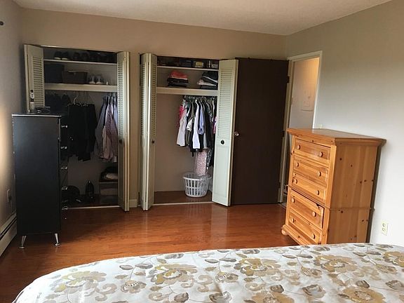 Open Sunday 5/6 12:30-2:00. Modern and airy 2 bedroom penthouse at the Villa Grande. Freshly painted and with a great open concept this unit shows beautifully and there's no one walking over head! There are gleaming wood look laminate floors for easy cleaning in your livingroom/diningroom combo and bedrooms. Beautiful sliders with new glass which allows the sunshine and fresh air to stream in, a private balcony to enjoy the sound of the trees on a nice summer night, fully applianced galley kitchen, gleaming floors and huge double closet in your master bedroom, King bed, No problem!!! Second bedroom is also a good size, can be used as home office. There is tons of storage,a beautiful tile bath and 2 parking spaces. Laundry in building on first floor. Minutes to all conveniences & Rtie 1, 128, 93 & 95. Heat and hot water are included in hoa fee! Unit will be delivered vacant.