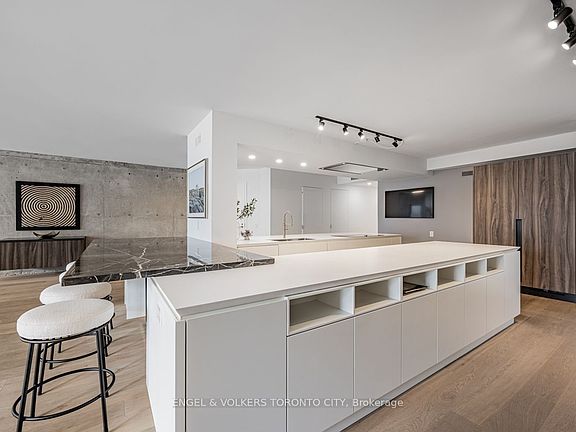 Indulge in unparalleled exclusivity with Suite 902 at Frederick House, a boutique residence boasting just 16 suites with only 2 units per floor. This sprawling, 2,550 sq ft lower east side masterpiece, nestled in the vibrant St. Lawrence Market neighborhood, has been meticulously re-imagined to maximize every inch, radiating sophistication, elegance, and timeless luxury. Designed for the most discerning buyers, this exquisite turn-key executive condo offers 2 palatial bedrooms, each with a lavish ensuite, plus a refined powder room. The kitchen, a marvel of Scavolini and Gaggenau craftsmanship, features the finest high-end appliances. With 4 expansive balconies, an endless amount of storage and closet space, and a layout perfect for entertaining, Suite 902 is a testament to impeccable design, opulent living, and flawless execution. The suite is simply stunning and must be seen to be appreciated, one of the very few buildings in the city with a functional wood burning fireplace in the living room, a rarity fully appreciated when used. 2 car parking, bbqs on the balcony and dogs of all sizes are welcome in this pet friendly, exclusive boutique building. Seize this extraordinarily rare opportunity to own a piece of perfection.