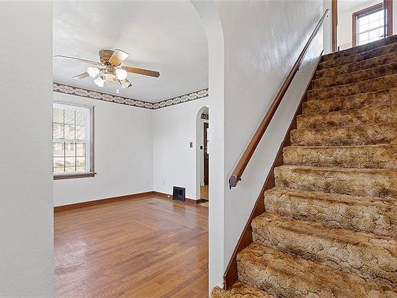 Wonderful Cape Cod home with detached 1 and 2 car garages, main bedroom on 1st floor hard, wood floors in living and dining room and possibly under carpet up stairs and in upper bedrooms. HWT and AC- 1 year old, Furnace 8 years old, 2 wood fireplaces, built ins and tons of character w/great wood 6 panels doors, plaster walls and partially finished basement. Nicely maintained yard and awesome driveway and parking area. Convenient location and waiting for its next family to make it theirs. Being sold as is by the trust but in good shape-just needs some updating.