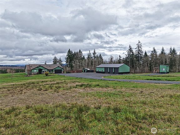 Indulge in luxury and convenience with this stunning custom 3-bedroom, 2.5-bath home set on 5.91 acres. Vaulted ceilings enhance the spacious design, while the primary suite boasts a lavish 5-piece bath featuring a rainfall shower for ultimate relaxation. The gourmet kitchen, complete with granite countertops, is complemented by a second prep kitchen with full-sized appliances. An oversized two-car garage and a heated 36x60 shop with 12-ft doors provide ample space for storage and projects. A chic tiny home with a loft adds flexibility, offering accommodations for guests or potential rental income. Breathtaking Chehalis Valley views and thoughtfully designed for modern living. Pre-inspection report available.