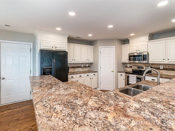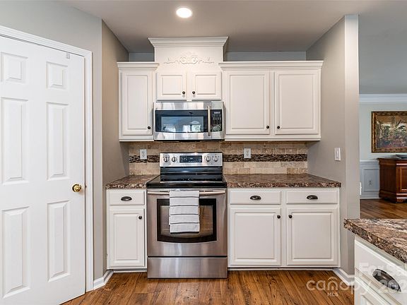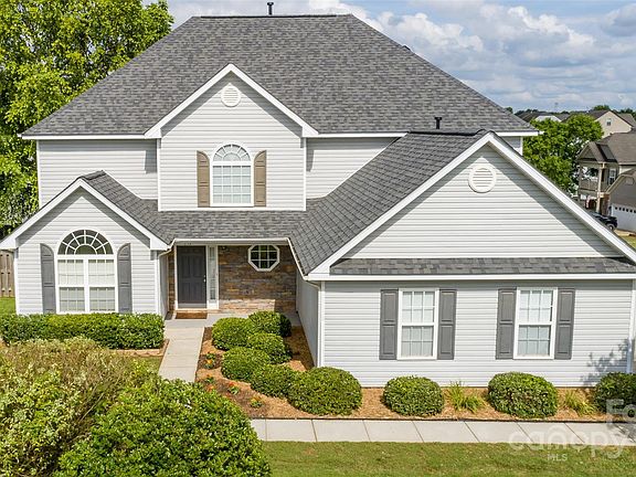 Welcome Home to this beautifully landscaped, welcoming home with stone accents and front porch facing the sunsets on a prime corner lot in the award winning Mooresville Graded School District. The house has a new roof (2022), New HVAC System (Jul 2023), new carpeting and custom woodworking throughout. Entering the bright 2-story foyer there is a great room featuring a lovely fireplace & a first floor bedroom w/tall ceilings & a door into the adjacent full bath w/new LVP flooring. Enjoy the large kitchen w/raised breakfast bar seating area, sunny table nook area, plenty of white cabinets and counter space, walk-in-pantry, den with a 2nd fireplace and a formal dining room. Upstairs you will find a split bedroom floorplan, laundry room and the huge primary suite w/adjoining sitting/flex area, ensuite bath w/tub, shower and spacious walk-in-closet. Back yard has a wooden privacy fence w/2 gates, patio, trees and garden. Enjoy the community pool, clubhouse, playground, picnic area & park.
