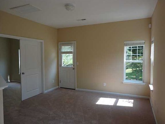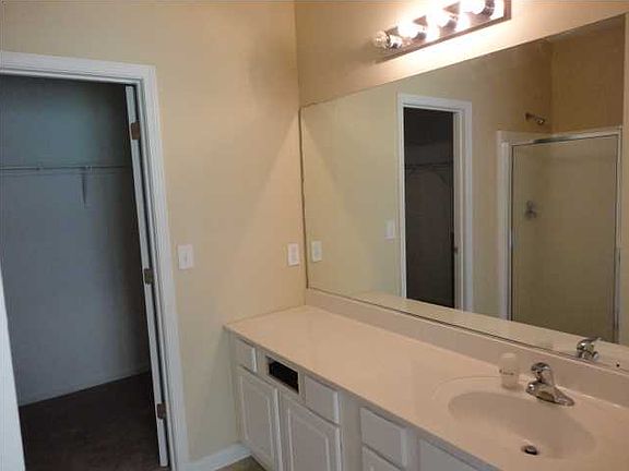 NEW PAINT AND CARPET-READY FOR YOU TO MOVE IN!!! Large end-unit with three bedrooms, three and a half baths, side entrance and one car garage. Each room has it's own bathroom attached, perfect for large family or room mates. Home features bedroom suite downstairs, 9 foot smooth ceilings, ceramic tile in kitchen and baths and lot backs up to lovely wooded area. Grand Oaks Preserve is a beautiful community with two lagoons, a pool, play park and amenity center.