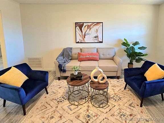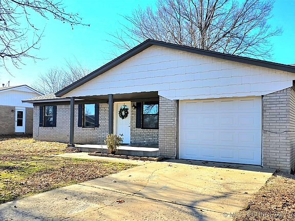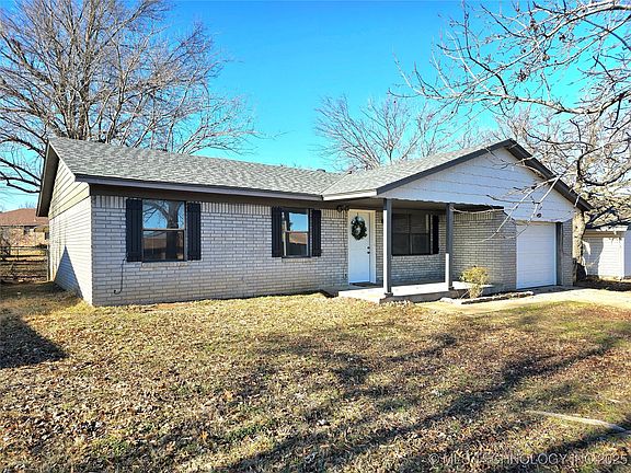 Charming Ranch-Style Home in the Heart of Keystone Lake Community! What a cutie! This full-brick, single-story ranch is perfectly situated in the highly desired Mannford school district, just two miles from Keystone Lake. Whether you're a first-time homebuyer or looking to downsize, this 3-bedroom, 2-bath home with a single-car garage is the perfect fit. Nestled in a quiet neighborhood within walking distance to schools, this home offers a peaceful setting with community sidewalks for leisurely strolls. Inside, you'll find new carpet in two bedrooms, while the rest of the home features wood-look tile flooring for easy maintenance. A brand-new roof, updated lighting, and fresh paint make this home truly move-in ready. The spacious kitchen boasts plenty of storage, a pantry, and a gas stove, making meal prep a breeze. Behind charming sliding barn doors, you'll find a convenient indoor laundry area. Enjoy summer cookouts on the covered back patio or unwind on the cozy front porch. With its great location, rental potential, and fantastic updates, this home is an incredible opportunity. Don't miss out. Schedule your showing today!