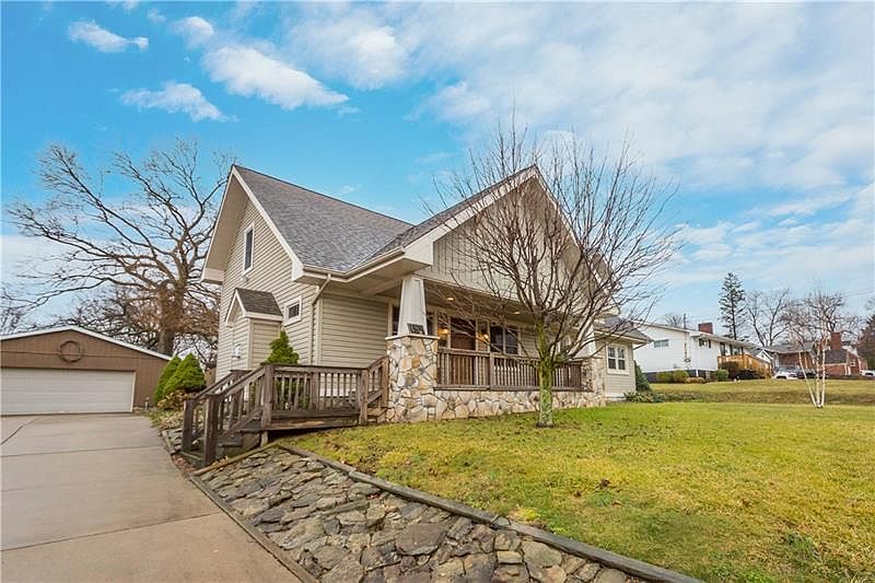 Not your ordinary home, this wonderful, rustic, Crafstmen-style home will be someone's relaxing getaway, right in the middle of Center Twp. Stone fireplace highlights the enormous Living Area with soaring cathedral ceiling leads up to a 27 ft. Loft area, ideal for home office, and is adjacent to another 21 x 16 ft. room perfect for playroom, entertainment area or potential 4th bedroom. Fully equipped cherry Kitchen/Dining combination has breakfast counter, pantry and storage galore. Spacious 1st floor Owner's suite and remaining bedrooms are secluded for everyone's privacy. And imagine enjoying summer breezes and cookouts on the covered patio overlooking almost 3/4 acre fenced level yard shaded by grand mulberry trees. If you want to take the action out of your yard, you're within sight of Center Twp.'s Municipal park with public basketball and tennis courts and dog park. Let's not forget the oversized 4 car garage, large enough for trucks, SUV's and/or his and her workshops.