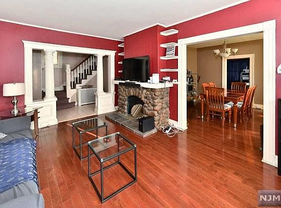 COMMUTERS DREAM! THIS LOVELY CORNER PROPERTY HAS A SCREENED FRONT PORCH GREAT FOR RELAXING & A FENCED BACKYARD FOR SUMMERTIME GATHERINGS & ENTERTAINMENT. 1ST LEVEL: BRAND NEW ENTRANCE DOOR, STEP INTO THE LR WITH COLUMNS IN ITS PASSAGEWAYS, INVITING DECORATIVE STONE FIREPLACE, MANTLE WITH WALL BOOKSHELVES ON EACH SIDE, TALL ARCHED WALL OVER THE WINDOWS, LR LEADS TO A SIZABLE FDR HAS STAINED GLASS WINDOWS, BOTH ROOMS HAVE BEAUTIFUL CHERRY HARDWOOD FLRS. KIT HAS SS APPLS, ALMOND COLOR CABINETS & FLR TILES, ACCESS TO THE LARGE BACKYARD W/CONCRETE PATIO TO ENJOY THE OUTDOORS & FULL BSMT WITH SEP. ENTRANCE IN THE REAR, WASHER & DRYER, EXTRA RM FOR A STORAGE SPACE. SUNROOM PERFECT FOR HOME OFFICE, GYM, GAME RM, FAMILY RM, IN-LAWS RM, GUEST RM. 2ND LEVEL: MBR, ADDT'L TWO BR, FBH, 3RD LEVEL: FIN. ATTIC IT'S A RECREATIONAL/STUDY RM, SEC. SYSTEM, NEWER WATER HEATER & FURNACE 6 YRS OLD, DETACHED 2 CAR GAR, DRIVEWAY 4 CARS,TRANS 4 MINS NJ TRANSIT TRAIN, 1 BLOCK TO BUS,MAJOR HGWY, WALK TO SHOPS