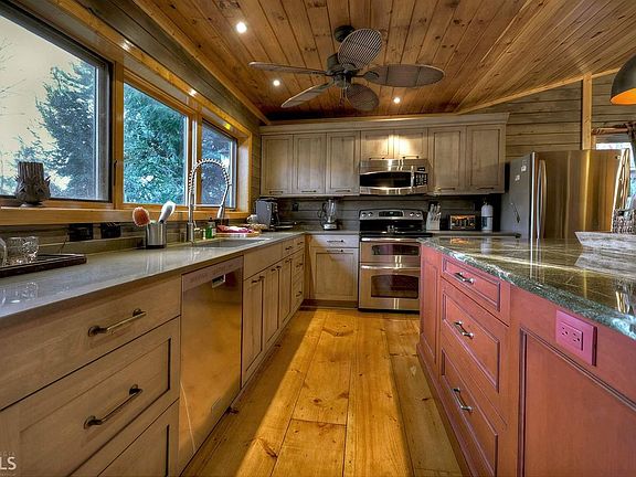 Amazing upscale cabin with YEAR ROUND, LONG RANGE MOUNTAIN VIEWS! Walk in and stand in awe as this cabin isnt like any other youve seen! Instantly fall in love with the gourmet chefs kitchen with granite countertops, upgraded kitchen appliances and wine fridge. The open floor plan flows easily and draws you over to the mountain view pouring through all the windows. Spacious dining area can accommodate up to 8 dinner guests and entertaining is a breeze with the open living area and multi-deck spaces! This cabin also boasts a sauna, an outdoor kitchen...the spacious deck areas provide a hot tub area, fire pit space and a covered area just to sit and relax and take in the mountain view! Full finished basement includes the 2nd bedroom & bath! Successful renta
