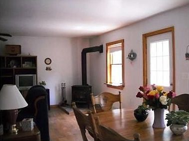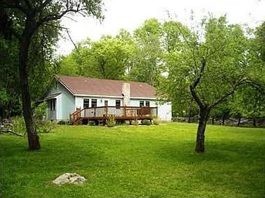 If you are looking for that perfect-sized vacation home, starter, one level living or perhaps right sizing, then take a look at this lovingly cared for home sited on 1.7 private landscaped acres. Only 12 years young this house offers 3 bedrooms and 2 full baths, hardwood floors throughout. Free standing woodstove adds warmth and comfort to sitting areas which surround newly glass-tiled upgraded ktichen with Corian counter, oak cabinets and newly added kitchen window carve-outs that create a comfortable
