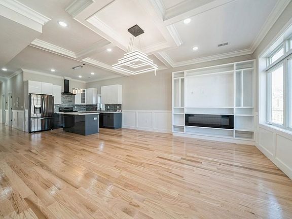 Welcome to your new home at 159 Hopkins, where new construction condo await your purchase ,in one of the most sought out sections of Jersey City Heights. This unit boasts generous floorplans, 10-foot ceilings, Base and Crown Molding. Kitchens feature beautiful quarts counters and Island, black LG stainless steel appliances, microwave, and wine cooler. Other features include oak flooring throughout, central HVAC, Samsung Washer/Dryer and shared garage side by side parking. Unit 2 features 1438 Sq. Feet of spacious living w/ 3 bedrooms and 2 bathrooms and an additional 390 sq. foot roof deck overlooking spectacular NYC views.. Private balcony overlooking backyard. Experience the pinnacle of luxury living where you will enjoy nearby Riverview Park and a plethora of other recreational activities. A 10-year construction warranty and a 5-year tax abatement further only enhance the appeal of your new home. Owner is a licensed NJ Realtor. Pictures are virtually staged.