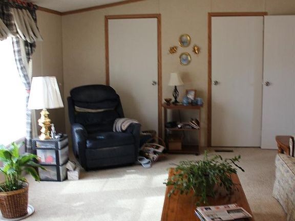 Very nice 1 acre lot w/3 bedroom, 2 bath 2006 double-wide on concrete block foundation and 36' x 28' detached garage/shop w/concrete floor. Neutral colors, neutral carpet, spacious living room, kitchen w/stove, refrigerator, dishwasher & lots of cabinetry & counter top space. Large master bedroom w/double door closet, master bath w/corner soaking tub and separate shower. Home backs up to beautiful farmland! Nice large side-deck, great for entertaining!
