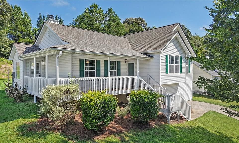 Welcome to 159 Jacobs Trail! This 3-bedroom, 2-bath traditional home is ready for your personal touches! Set on an oversized lot, it boasts peaceful views from the rocking chair front porch. The layout offers a spacious living room with a cozy fireplace and an eat-in kitchen featuring ample cabinetry and natural light. The primary suite includes a walk-in closet and a large en suite bath with a separate garden tub and shower. Enjoy outdoor living with a large backyard, a back deck and plenty of space to make it your own. Bonus features include a 3-car garage, a welcoming front porch, and incredible curb appeal. Located just minutes from Coots Lake Beach and the Silver Comet Trail, with easy access to Highway 278 and Highway 92. Schedule your showing today!