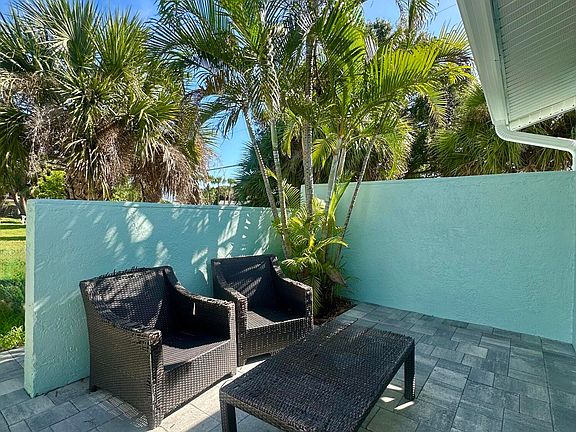 Private front courtyardTwo bedrooms two bathroomsDedicated office areaIndoor laundry roomUpgraded outdoor showerHurricane-impact windows and doorsScreened back patio