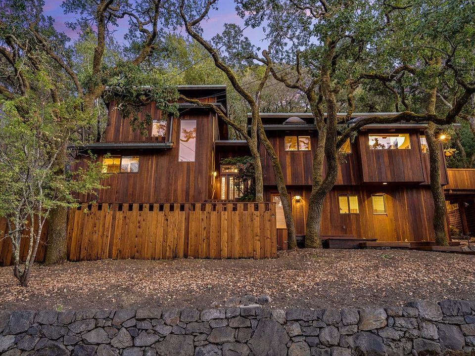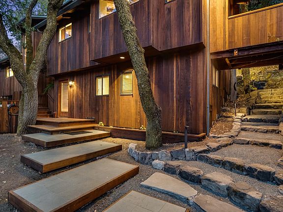 There is a saying "they just don't make them like this anymore." This crafted Redwood build borrows notes of contemporary architectural designs - the essence of organic modernism and sustainability from every corner and inch. Once a cabin, which later blossomed into a rebuilt extraordinary home that fluidly blends into the wooded hillside. The hillside has been restored to its native California natural state from flowers to trees, a sanctuary with pathways resembling wavelike organic transitions from hillside to the expansive redwood decks. Interior of the home has a large living room with soaring 10 ft ceilings. Hardwood flooring and open kitchen with views from all windows of mature Oaks. Master has en-suite bath leading out to a deck, gives the feeling of a resort-like retreat. The 2nd bd has Redwood paneling and is swallowed by light. 3d bd has its own separate entrance with full bath. Detached two car garage. A sanctuary on one of the largest double lots in Emerald Hills.
