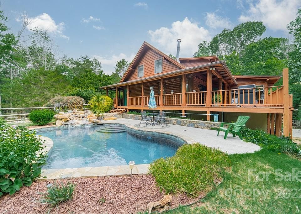 Please submit best offer by 12pm July 14th. Mountain Cabin retreat with immeasurable privacy, picturesque surroundings & a stunning inground pool, just minutes away from Lowe's Corp HQ! Every room of this White Cedar Log home was designed to promote the union of people and nature living in harmony. Impressive craftsmanship is seen from the moment you enter including the hand-hewn staircase & railings. The 2-story great room boasts a soaring stone fireplace that gives a warm ambiance. The kitchen features natural wood cabinets, laminate countertops, tin backsplash & large center island. The cozy dining area opens to the kitchen. A soap stone stove enhances the homes efficiency. A large primary bedroom opens to the impressively large sunroom which gives exquisite views of the landscape that surrounds you. The upper level offers 2 spacious bedrooms, one of which has a unique open design that looks over the great room & each features large storage areas. The basement offers over 2300sqft.