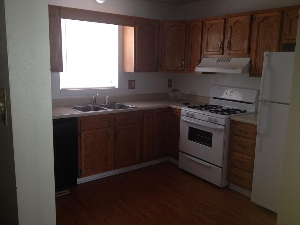Townhouse with fully equipped kitchen, Dining room, Living room, and powder room on main level. Sliding door to deck out back. Top level with 2 bedrooms and Large bath. One bedroom with cathedral ceiling and door to bath. Lots of closet space. Garage and Basement with Laundry hookups. Basement can be used as 3rd bedroom. Tenant pays all utilities