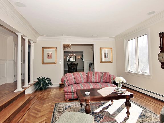 Grand sunny space, open design, main flr Master wing & in-law suite are highlights of this gracious home in much admired Stamford fine homes' enclaves nr Greenwich line, on 3.83-magnif acres w circ drive+4-c gar, htd pool, patio, deck & level grounds. WOW EIK w vltd/skylit areas, 2-islands, custom cabinetry, granite & SS, coffee bar area & wine area. Both EIK & LR open to FR w stone wall fpl & there's a lg formal DR & main flr Great rm w coffered ceiling & fpl, too. Main flr guest suite has bath+WI closet, while pvt Master wing has BR w vltd skylit ceiling, WI closet/dress rm, majestic marble bath & office/lounge/nursery w full bath. Upstairs there are 2-BRs, ea w WI closet+new bath. ALL baths replaced/updtd last 4-yrs. Fin walkout LL offers versatile suite w 2-full baths. Special indeed.