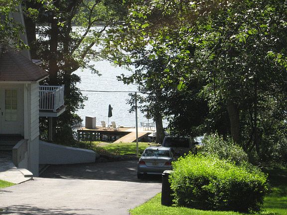 Slate Porch, Open Floor Plan Fieldstone Fpl. w/ Vt casting wood stove. 4 Bdrms, Playrm, 2 Full/Tiled Baths, 1 Half Bath, Laundry rm, & Eat-in kitchen w/ island & 36" cherry cabs. Wood floors throughout. Full Bsmt, & Attic. New 2015 Roof & Skylights, Central AC. 2 bay attached garage, fenced yard, shed, patio, Hot Tub. Inc. 2 slip dock on Beautiful 9 mile Greenwood Lake...enjoy swimming, boating, lake activities, private beach & tennis courts, community activities & Boat House, as well as Playground & summer program of children's activities.