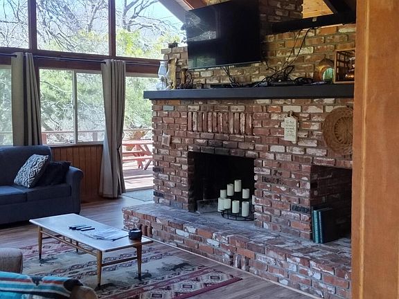 New siding, new paint, new deck, new windows, new floors, new mini splits - this mountain cabin is ready for you to just move in and enjoy it! The vaulted knotty pine ceilings, wood paneling, and huge brick fireplace leave no doubt you are in a mountain cabin. Relax on the large back deck in the shade of a beautiful oak tree or use the included relatively flat adjacent lot for yard games and other outdoor activities. There is one bedroom and a bath on the main floor and a huge loft bedroom with a sitting area upstairs. A garage with an attached bonus/storage room is located just off the kitchen door. This lovely cabin is an established vacation rental but could also be a vacation or full-time home. Did I mention that the cabin is fully furnished and equipped and the owned solar means little or no electric bills? This cabin is priced to sell so call today before it's gone!