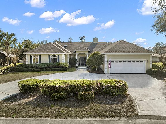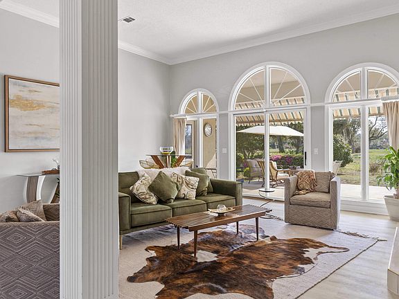 This house exudes tremendous sunlight emphasized by the 12' ceilings and expansive windows. New roof 2021, A/C 2018, LPV flooring 2022. Primary suite boasts 2 primary bathrooms, 2 walk in closets and an elaborate new double shower (2023). Private outdoor entertaining area backs up to green space which becomes the most amazing backdrop for watching the sunset. A beautiful fireplace, oversized circular drive, 2 car garage with room for workshop, den with custom built ins, double paned windows, and an abundance of storage (including attic) make this your new perfect home! Bay Point Community features 24/7 manned security, 18 hole Nicklaus designed golf course, brand new marina, tennis courts and restaurants.