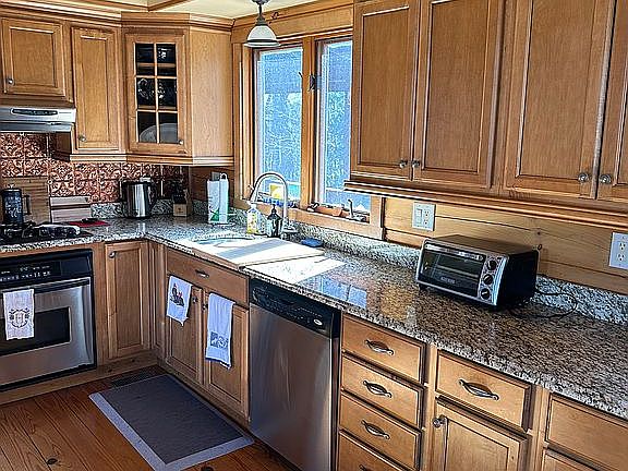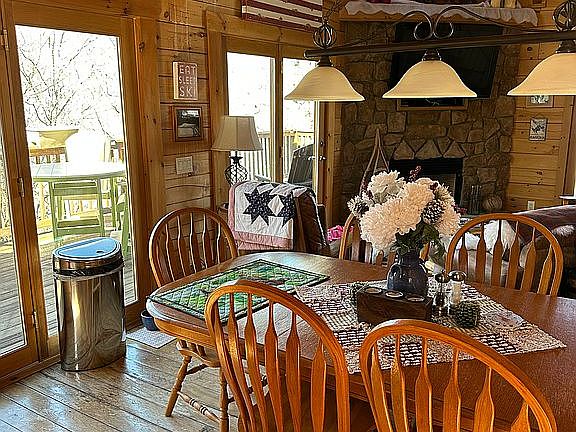 Beautiful cabin on top of the hill. Second lot cleared/graveled for extra parking. 2.48 acre total. Master suite with walk-in closet, water jet tub, marble shower and double sink vanity. Roomy kitchen with gas stove and granite countertops. Main den with vaulted ceiling and loft sitting area. Two gas log fireplaces. Big downstairs bedroom, pool table, wet bar, laundry, bath and den.