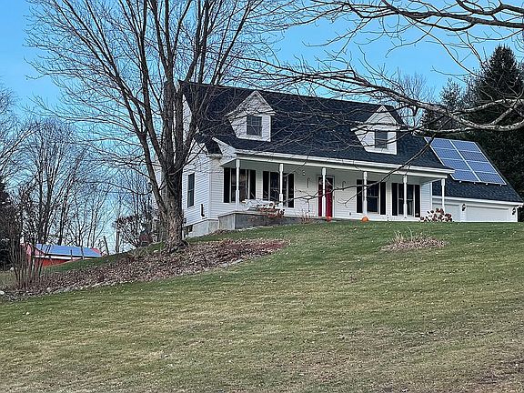 This energy efficient Cape is in the ideal location on a quiet culdesac, only a short drive to either Killington or Okemo ski resort. These owners knew what they were doing when they installed the heat/cooling heat pumps along with the solar panels and the hot water heat pump. This beautiful home sets in a small neighborhood and exhibits privacy and views hard to find. The first flr offers a bdrm & 3/4 bath, a country style kitchen, formal dining area, 13x24 living room and a pantry/laundry room. The second flr has 2 nice size bdrms with a full bath. Wait till you see the 24x24 custom finished basement with beautiful wood walls. Other features of this home include the architectural asphalt roof(2016), the attached 2 car garage, rear deck, the 20x20 barn w. wood stove, chicken coop, pool area and hot tub with partially fenced in rear yard and a fabulous front porch that takes in some scenic Vermont views.