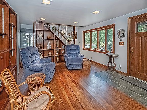 Slippery Rock Creek side home in Slippery Rock Park.Minutes to Slippery Rock Univ. Next to Slippery Rock Golf course. Easy commute to Butler, Pittsburgh,Grove City,Erie. Studio or boat house with water and electric.Home Exterior are Chestnut logs and Cedar siding. Kitchen has an abundance of cabinetry and counters, great pantry,laundry room, newer appliances,recessed lighting and skylights .Living room and dining room combo with bamboo flooring and built ins.Enjoy a warming fire by the stone fireplace in the cozy family room in winter. Spacious first floor master bedroom. Work from home? there is a good size office,could also be a 4th bedroom,with sliding doors to the screened 12x12 porch.Across the trail there are 3 garages, also an insulated workshop or garage.Level 1/2 acre lot could be your new Pickleball Ct. Includes a whole house Generac Generator. This has been a treasured Shangri-la for the owner.Fenced yard,10x10 garden shed. Steps to Creek for boat access.